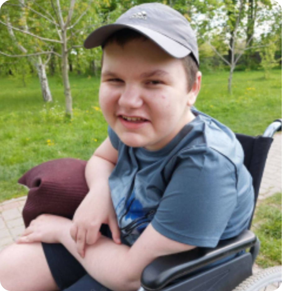 Maksym was trapped under occupation with his father until May 9, when they safely relocated to Saltivka, Kharkiv. As a Duchenne muscular dystrophy patient, his life expectancy is typically around 20—but with the right support, he can live into his 30s or 40s. Public assistance was insufficient, so we stepped in.