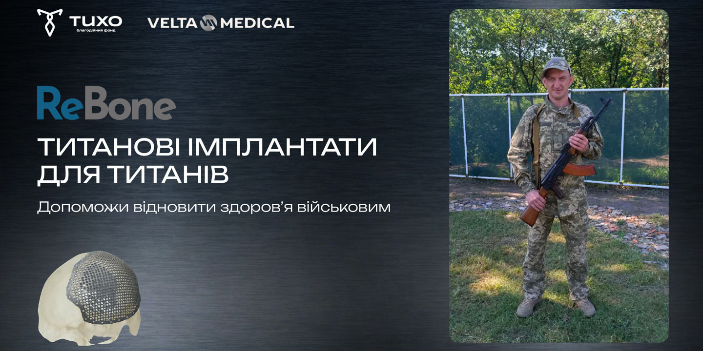 Щоб допомогти людям відновити здоров’я БФ «Тихо» та компанія Velta Medical запустили спільну ініціативу ReBone. Це соціальний проєкт, де команда біоінженерів та хірургів створює персоналізовані титанові рішення. За три роки роботи в Україні командою Velta Medical виготовлено понад 200 імплантів.